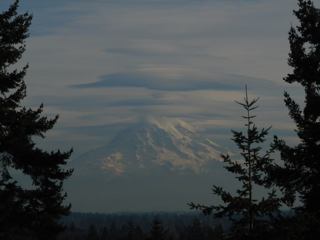 The Pacific Northwest gets a lot of grief about all the rain but every now and then, we get some spectacular weather. The temperatures stayed in the 40s today but it was mostly clear and Rainier was awesome in the distance. I tried to capture the weather over it's head but this picture just does not quite do it. There were 4-5 rings of clouds over top when I took this...