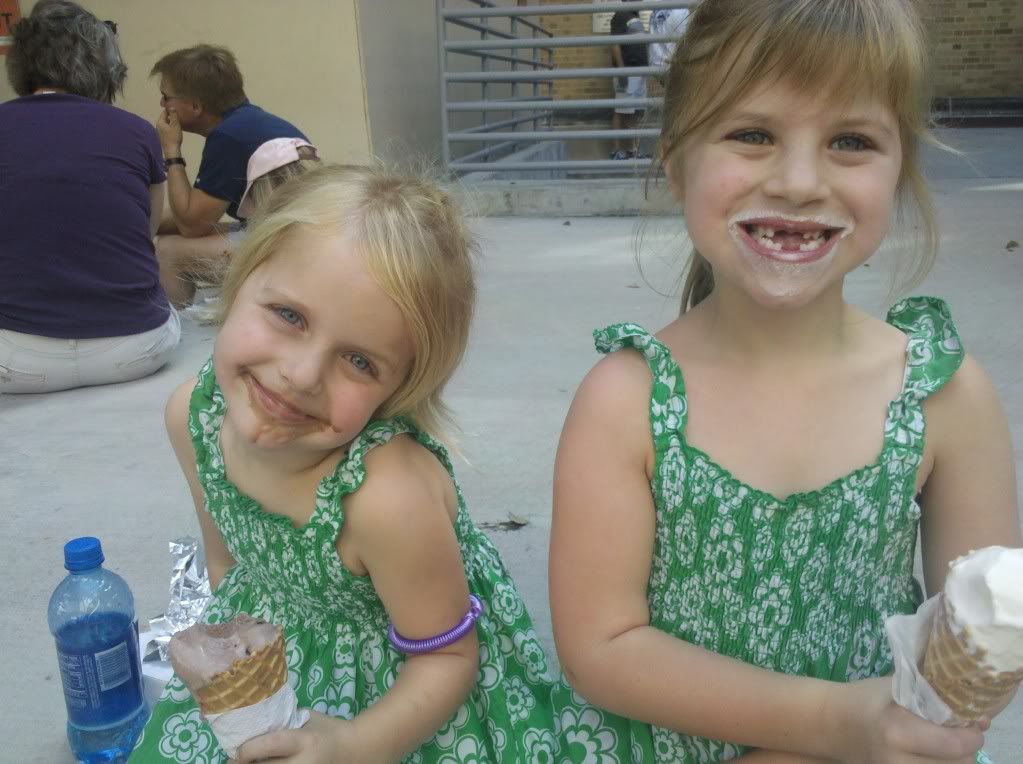 The girls and I headed to downtown for the Bayou City Art Festival. I had never been before but I was jonesing for something resembling the outdoor markets and festivals that we were spoiled with over the last 3 years. And this one delivered. There was an amazing amount of art on display. Some really fantastic stuff that ranged from basic jewelry up to sculptures selling for $20,000. When we got there, the girls were more interested in getting some food so we ate first. And then came the ice cream.